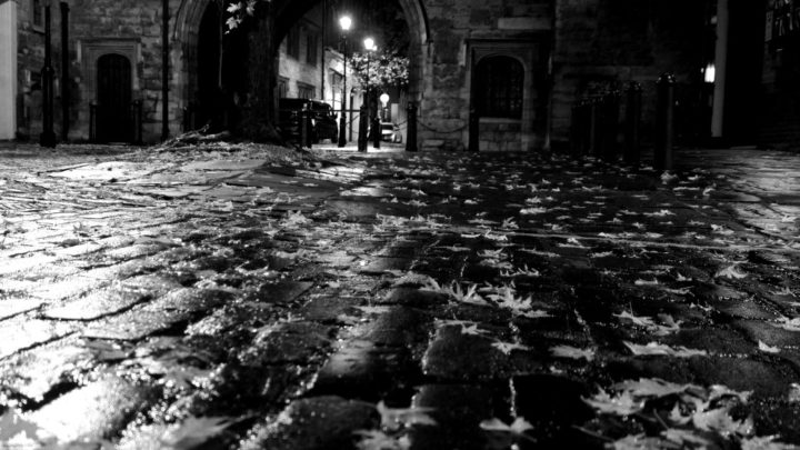 雨はすでに止んでいて、石畳の通りを普段より色濃く染め上げて逃げていた。あれほどうるさかった雨音も去り、窓に映る飛沫だけが余韻を残している。